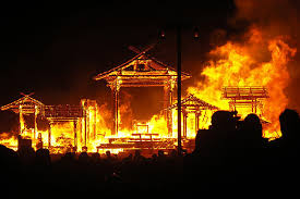 burning house. burning man asian